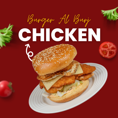 Burger Al Burj: Grilled or fried chicken with cheddar, egg, hashbrown, onion rings, gherkins, spicy mayo, and burger sauce — in a toasted bun